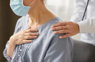 ③ 신체검사: 청진기로 호흡음을 확인해 폐가 잘 부풀어 오르지 않는 부분을 찾습니다.