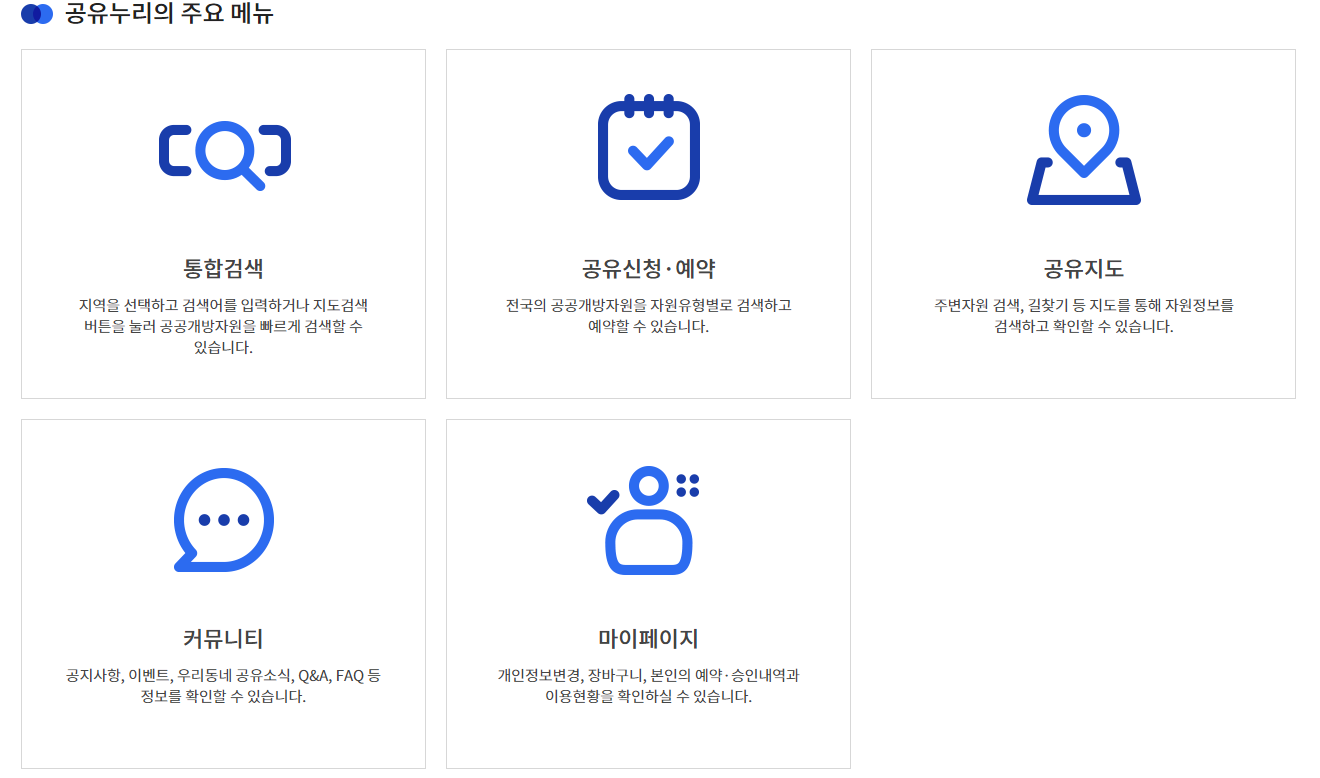 이번 서비스 확장의 중심에는 '공유누리'라는 공공자원 통합예약 플랫폼이 있습니다. 공유누리는 중앙부처, 지방자치단체, 공공기관 등이 보유한 시설과 장비 등을 국민들에게 개방하고, 이를 온라인으로 손쉽게 예약할 수 있도록 만든 시스템입니다. 대표적으로 체육시설, 회의실, 주차장, 교육 공간, 물품 대여 등 다양한 자원이 등록되어 있으며, 일부 자원은 무료로, 일부는 저렴한 비용으로 제공됩니다.
