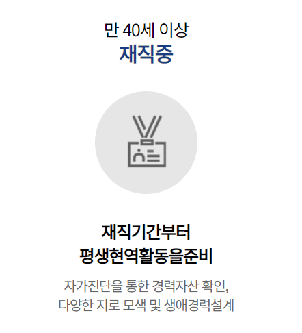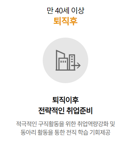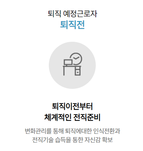 ◦ 재취업 알선: 중장년 친화기업과의 협업을 통해 구직자와 구인처를 매칭해 줍니다.
